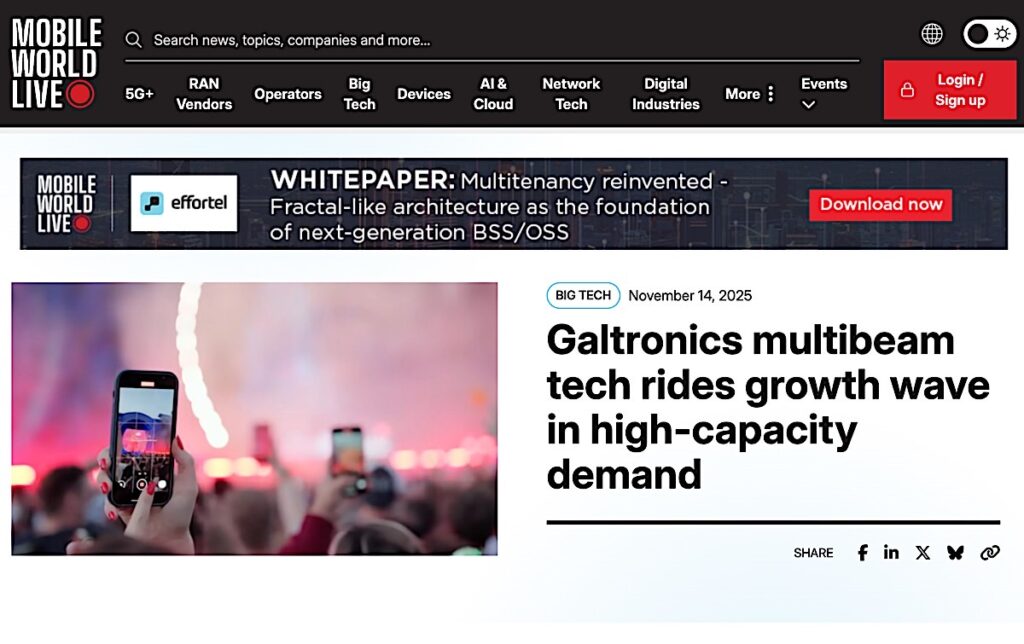 Mobile World Live: “Galtronics multibeam tech rides growth wave in high-capacity demand” Read More »